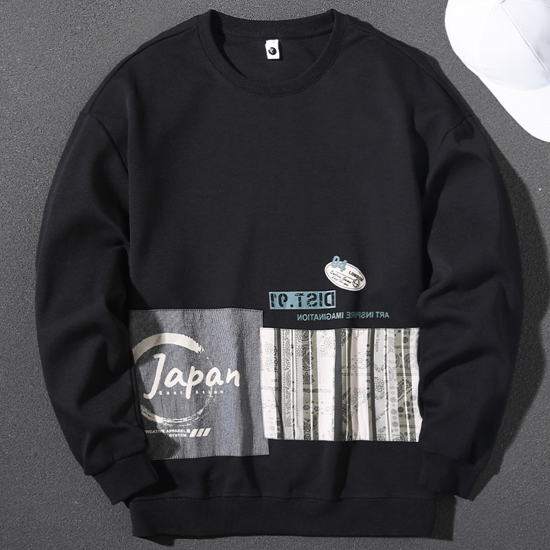 Handsome Japanese sweatshirt men's autumn and winter trendy new round neck pullover long-sleeved printed loose casual versatile top