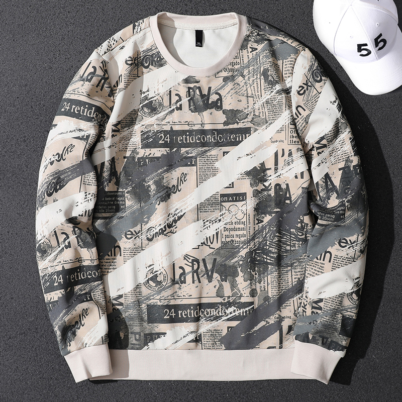 Handsome Autumn New Printed Round Neck Sweater Men's Trendy Korean Slim Fit Versatile Bottoming Shirt Personalized Long Sleeve Top