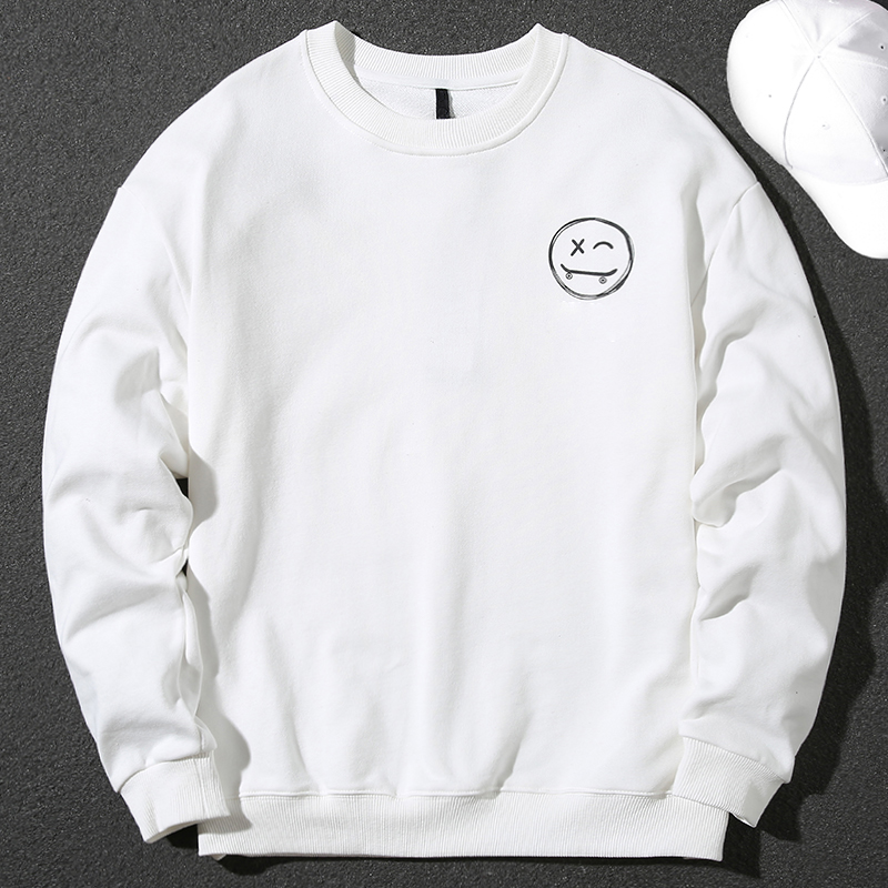 Handsome pure cotton hooded sweatshirt for men, autumn and winter Korean style smiley face letter print loose long-sleeved pullover casual top