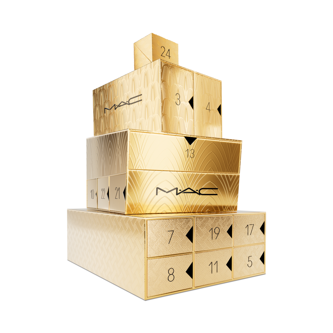 Count down to the most priceless gift of all with our limited-edition Advent calendar. This keepsake box is all decked out with 24 full-sized and mini surprises to unbox daily, featuring best-selling products and shiny new shades – plus a limited-edition M·A·C black sleeping mask for when beauty rest calls. Ready to gift in a holiday-exclusive, keepsake gilded box at a gold star value.