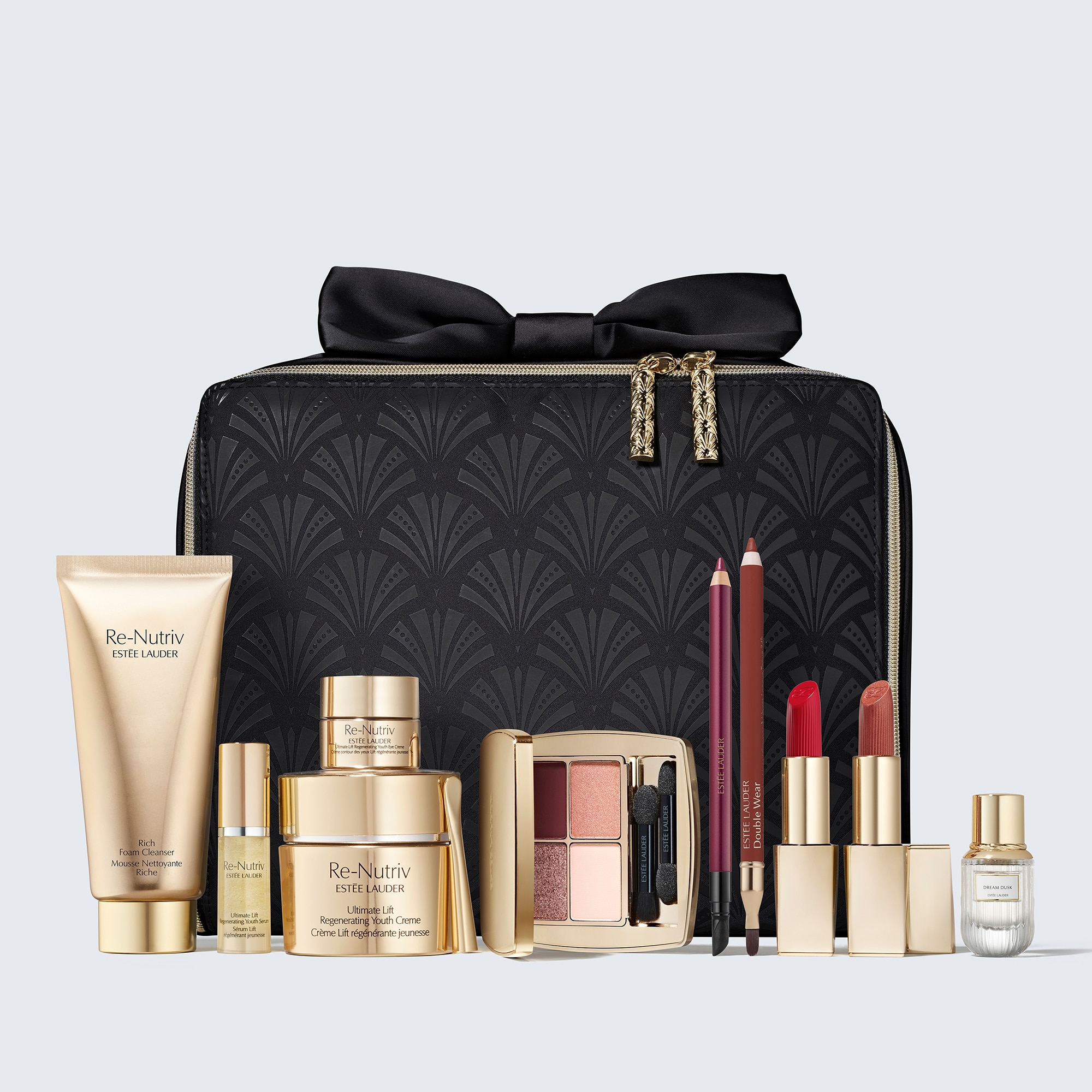 Quantities are limited—shop our 2024 Luxury Blockbuster now and get 4 Re-Nutriv luxuries, plus 5 full-size makeup favorites and more. All in a deluxe train case made with 100% recycled fabric. See complete shade and size details below.